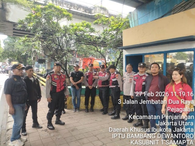 centralpostnews.com | Jakarta, Dalam rangka mengantisipasi pergerakan massa menuju pusat kota, Polsek Metro Penjaringan menggelar Apel Penyekatan di Jalan Jembatan Tiga Raya, Kelurahan Pejagalan, Kecamatan Penjaringan, Jakarta Utara, Jumat (27/2/2026) pukul 09.30 WIB.