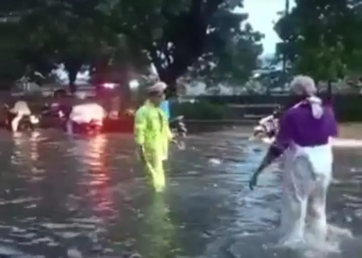 “Genangan air setinggi 60 cm di Jalan Meruya Selatan arah ke Pos Pol Meruya (depan Kompleks Meruya Indah) Jakarta Barat. Saat ini tidak bisa dilalui oleh kendaraan. Diimbau bagi pengguna jalan untuk mencari jalur alternatif,” tulis TMC Polda Metro Jaya melalui akun X resminya, Minggu (8/3/2026).